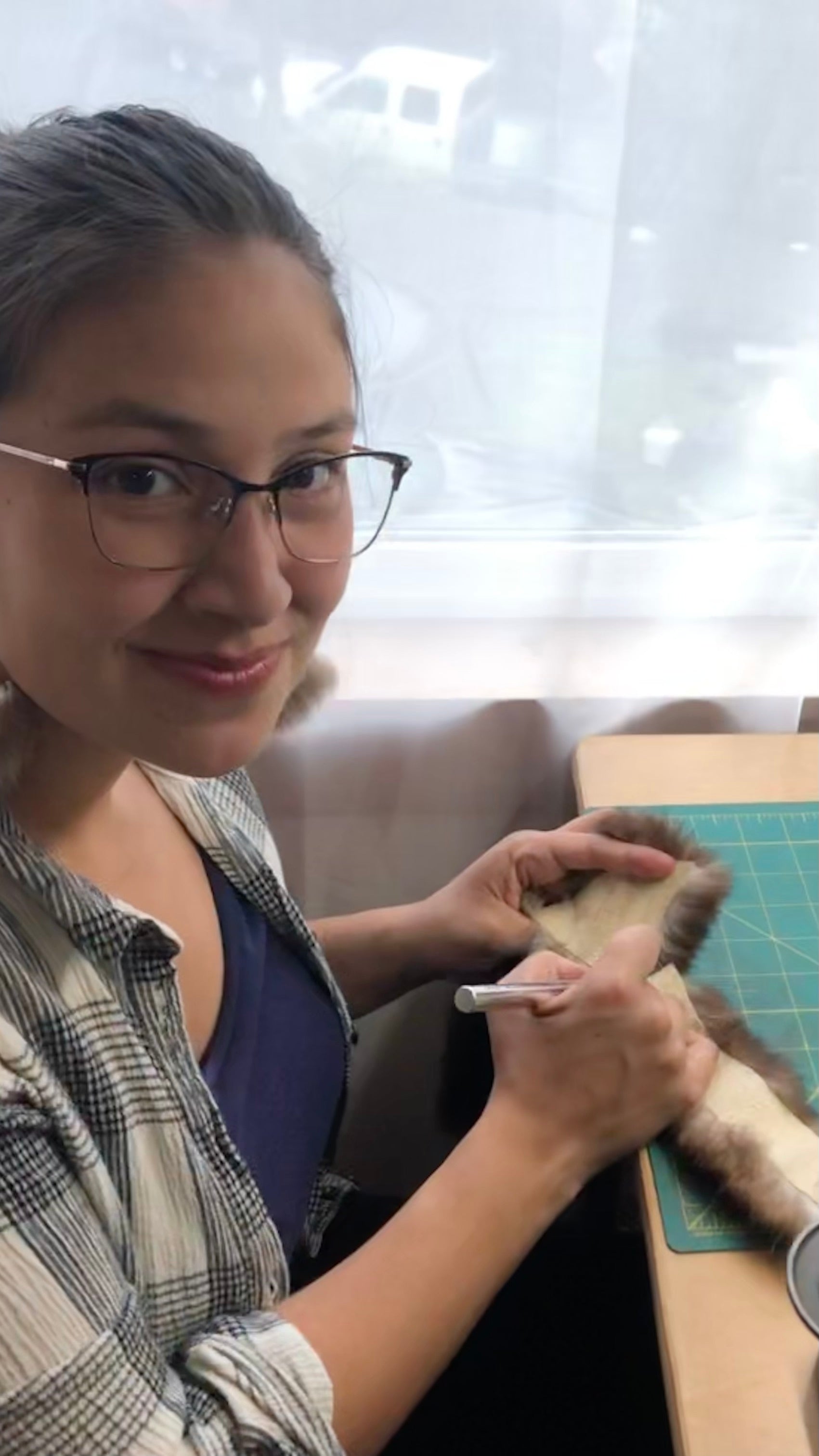 Every Sea otter I use is hunted by myself or a family member they are then tanned professionally. From there I stretch the hides and soften them so they are ready for my pieces which are all hand cut and trimmed by me.