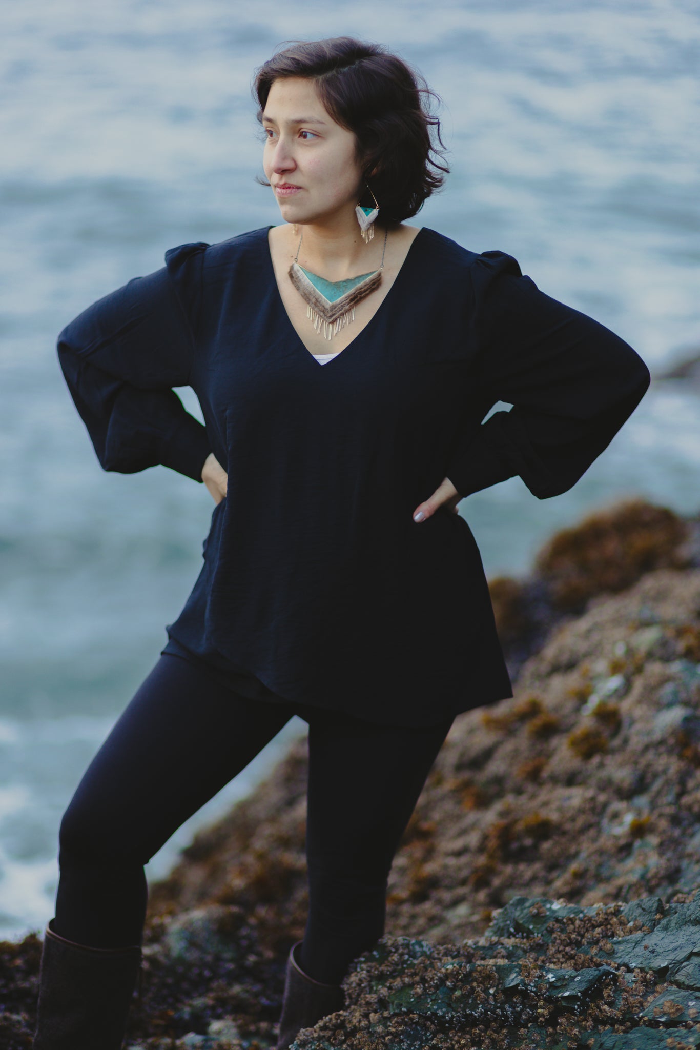 I am inspired by the ocean. My ancestors were ocean going people but, I also grew up commerical fishing in Southeast, Alaska. The ocean is in my blood. It inspires every collection.